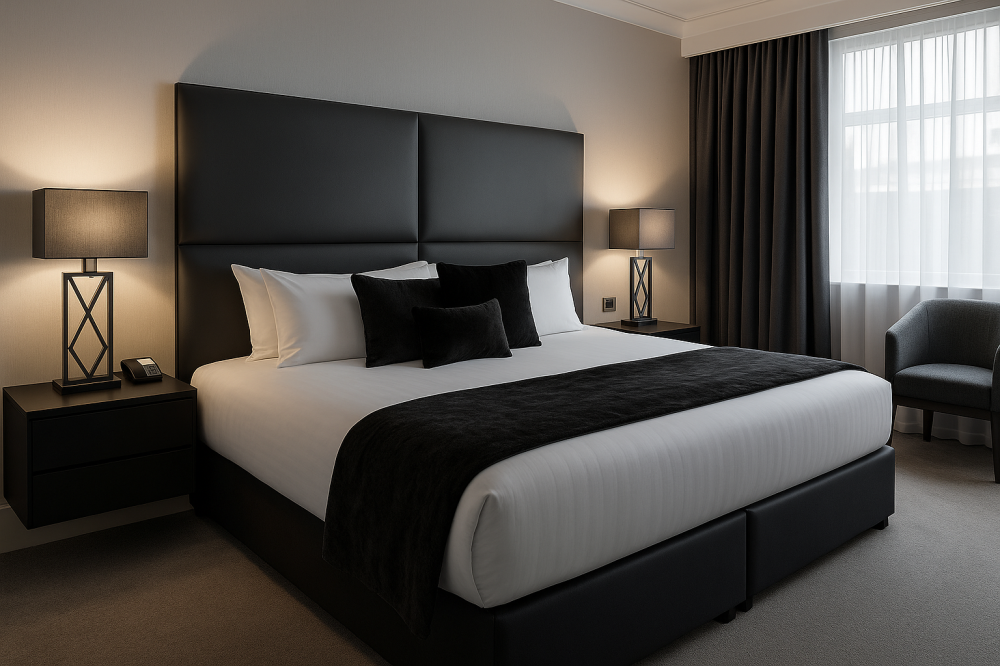 ارتقِ بتجربة غرفتك مع طقم غرف نوم فندقي فاخر بتصميم حديث وجودة عالية، يمنحك إحساس الفنادق الراقية داخل منزلك.