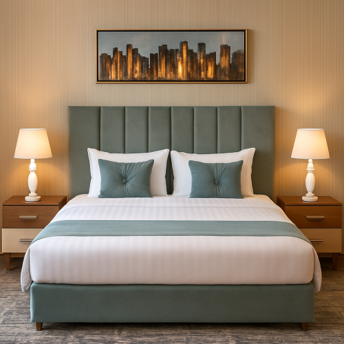 ارتقِ بتجربة غرفتك مع طقم غرف نوم فندقي فاخر بتصميم حديث وجودة عالية، يمنحك إحساس الفنادق الراقية داخل منزلك.