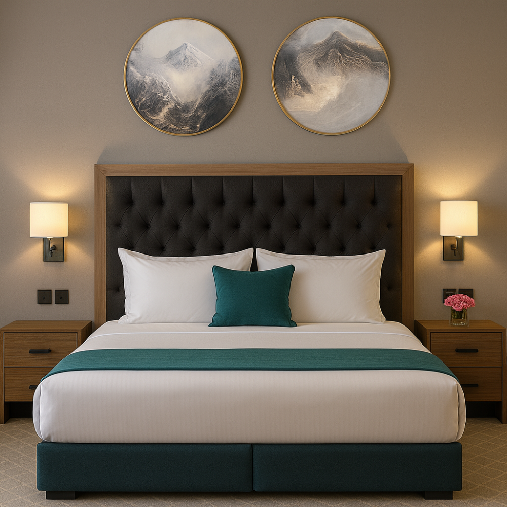 غرفة نوم فندقية فاخرة – تصميم مودرن راقٍ
